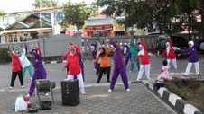 Di antara lenggak-lenggok ibu-ibu melakukan gerakan-gerakan senam tera, suasana kebahagiaan tersirat dari ibu-ibu yang terlihat masih enerjik itu. Gelak tawa dan celotehan-celotehan kecil terdengar di sela-sela suara musik pengiring yang terdengar dari sound system.